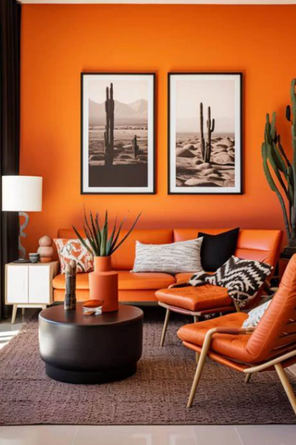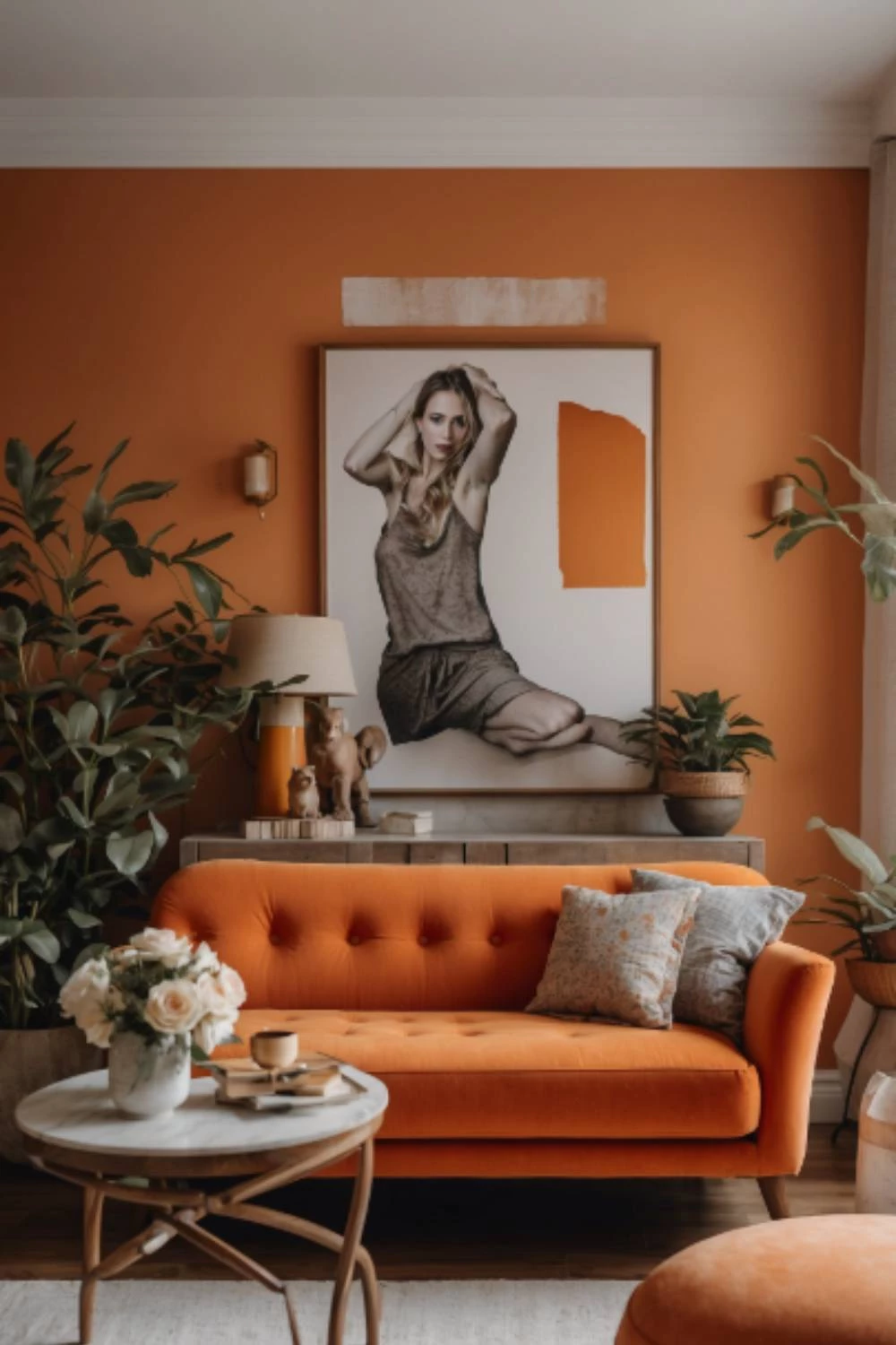 2. Tangelo Orange Couch & Warm Walls: A Cozy, Sun-Kissed Glow