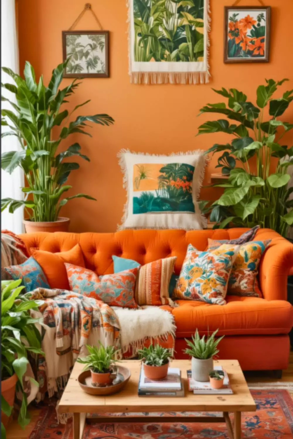 So, which of these designs speaks to you the most? Whether you love cozy textures, artistic expressions, or structured symmetry, let your orange couch be the heart of your decor. Get inspired, experiment with styles, and create a space that truly feels like home!