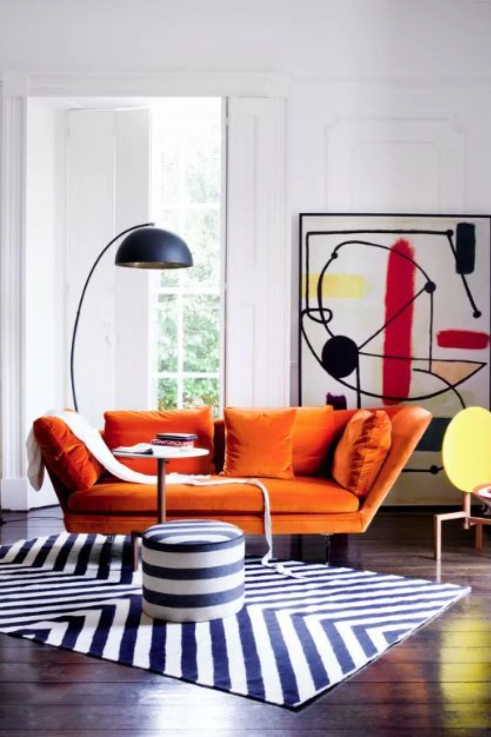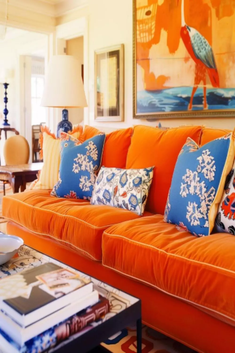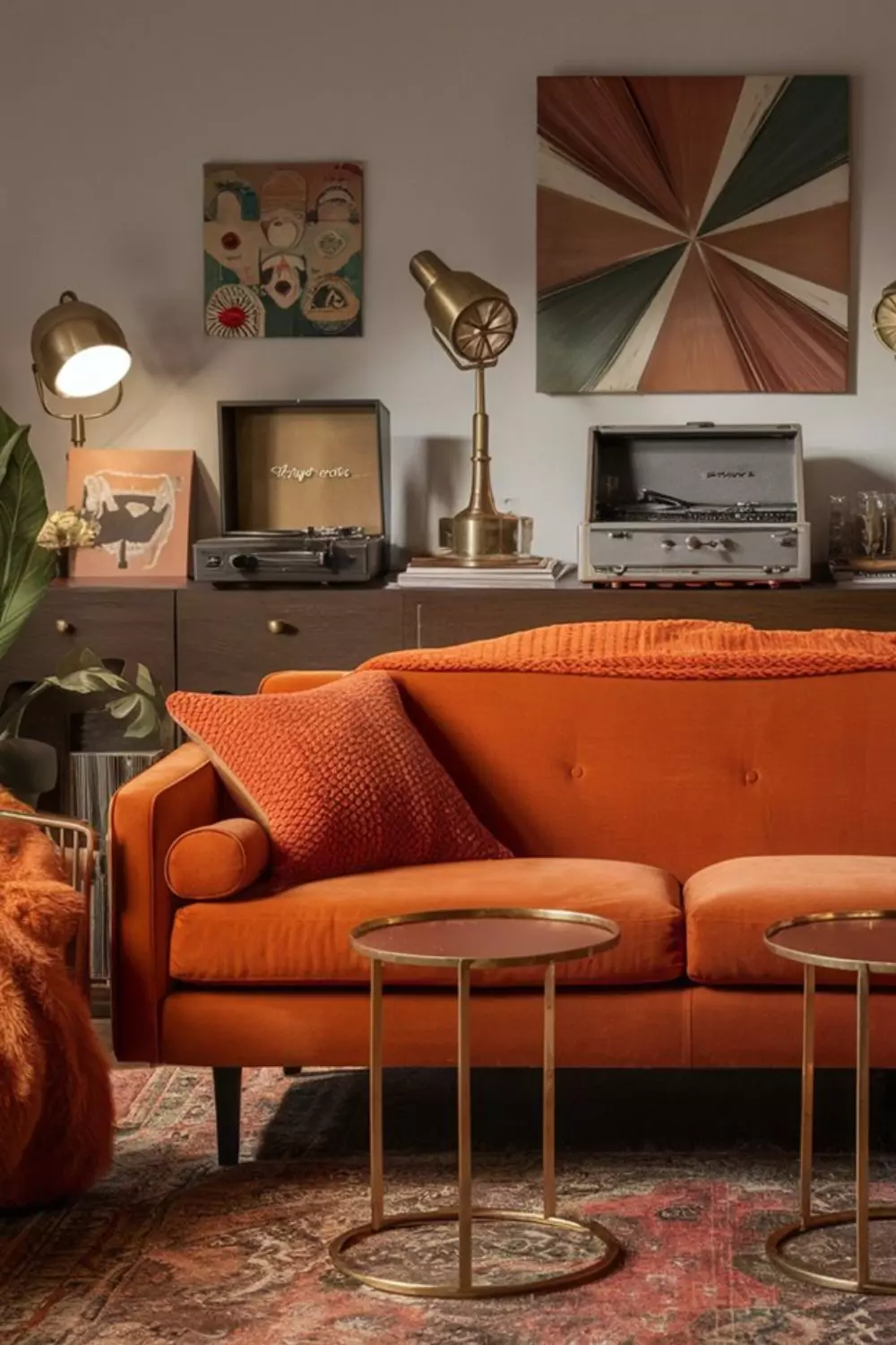 3. Orange Couch Meets Iconic Design: A Retro-Chic Statement